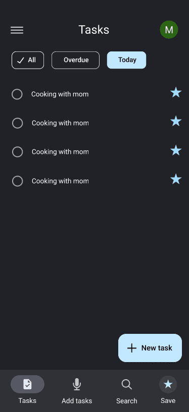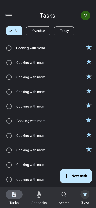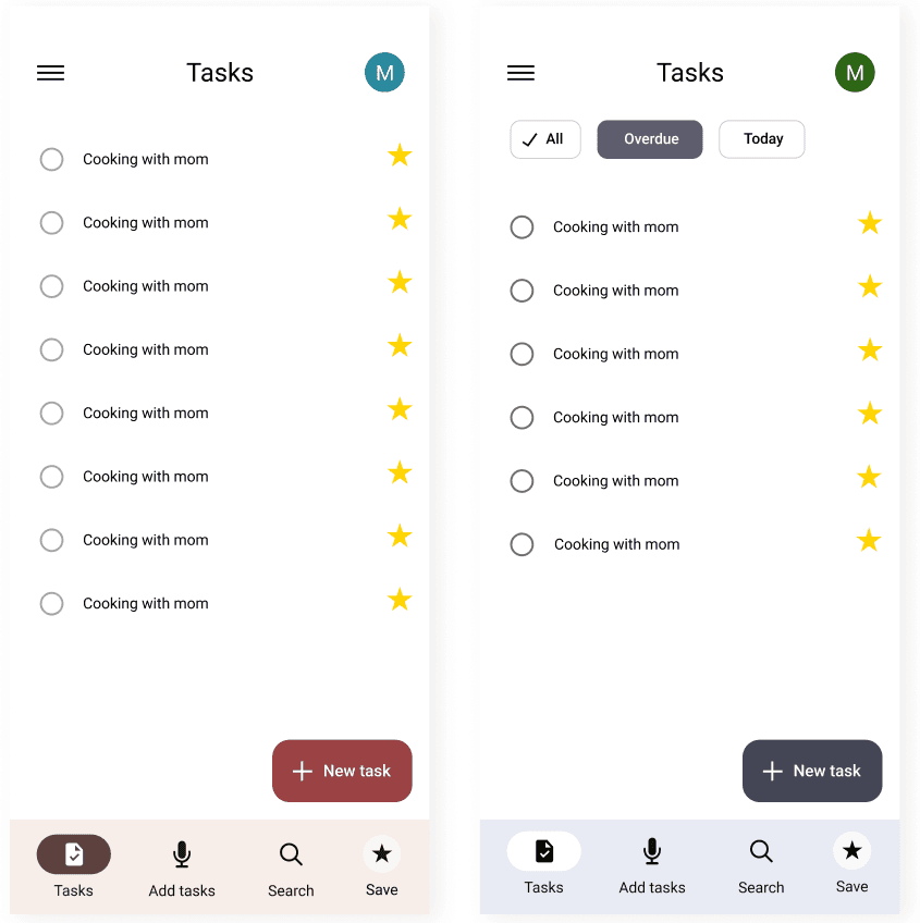 In designing the app, I prioritized accessibility to ensure it is user-friendly for a diverse audience. I kept the interface clean and intuitive, with clear visual cues and concise text to make navigation straightforward. Combining text with a well-organized menu helps users quickly find what they need.The navigation flow was designed to be simple, with minimal steps and clearly labeled controls that are easy to locate. I also included voice input functionality, not only to assist users who prefer voice commands but also to expedite the task entry process. Utilizing Google Material Design 3, I ensured that the design adhered to the highest accessibility standards, facilitated by the comprehensive guidelines and tools provided in the Figma kit.