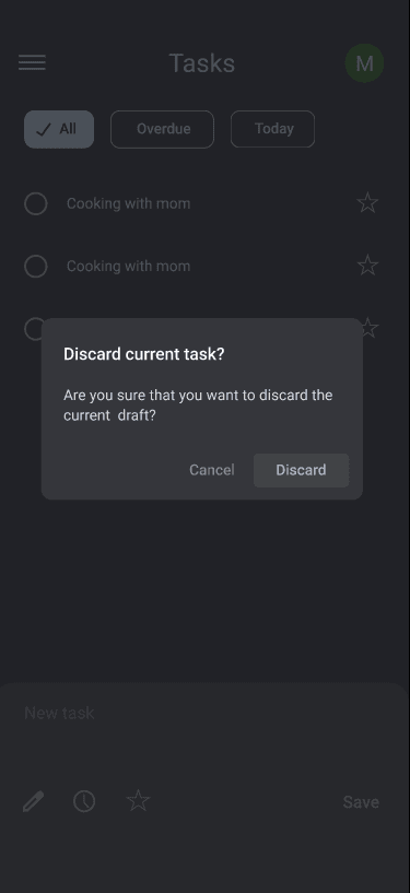 Was added confirmation dialogs for critical actions such as deleting or discarding tasks. Previously, the app would immediately delete items without any prompt, which could lead to accidental data loss. Now, users receive a confirmation dialog before such actions, reducing the risk of mistakes and enhancing data security.