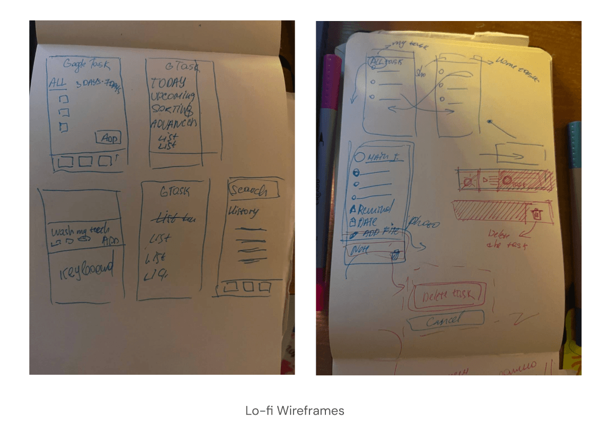 Before diving into sketching and wireframing, I conducted a comprehensive competitive analysis to identify key competitors and understand the most common functionalities in task management apps. This analysis helped highlight the strengths and weaknesses of Google Tasks in comparison to its competitors.